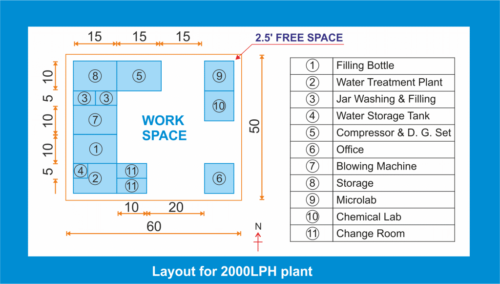 The Layout above is a sample layout for a 2000 LPH Mineral Water Plant.